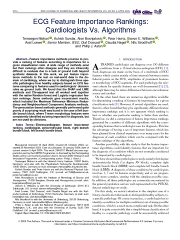 Mehari, T; Sundar, A; Bosnjakovic, A; Harris, P M; Williams, S E; Loewe, A; Doessel, O; Nagel, C; Strodthoff, N; Aston, P J (2024) ECG Feature Importance Rankings: Cardiologists vs. Algorithms. IEEE Journal of Biomedical and Health Informatics, 28 (4). pp. 2014-2024.