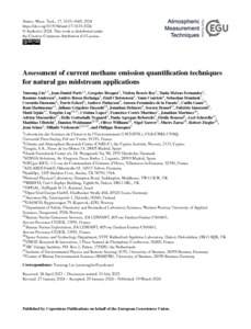 Liu, Y; Paris, J D; Broquet, G; Bescos Roy, V; Meixus Fernandez, T; Anderson, R; Russu Berlanga, A; Christensen, E; Courtois, Y; Dominok, S; Dussenne, C; Eckert, T; Finlayson, A; Fernandez de la Fuente, A; Gunn, C; Hashmonay, R; Grigoleto Hayashi, J; Helmore, J; Honsel, S; Innocenti, F; Irjala, M; Log, T; Lopez, C; Cortes Martinez, F; Martinez, J; Massardier, A; Gottschalke Nygaard, H; Agregan Reboredo, P; Rousset, E; Scherello, A; Ulbricht, M; Weidmann, D; Williams, O; Yarrow, N; Zarea, M; Ziegler, R; Sciare, J; Vrekoussis, M; Bousquet, P (2024) Assessment of current methane emissions quantification techniques for natural gas midstream applications. Atmospheric Measurement Techniques, 17 (6). pp. 1633-1649.