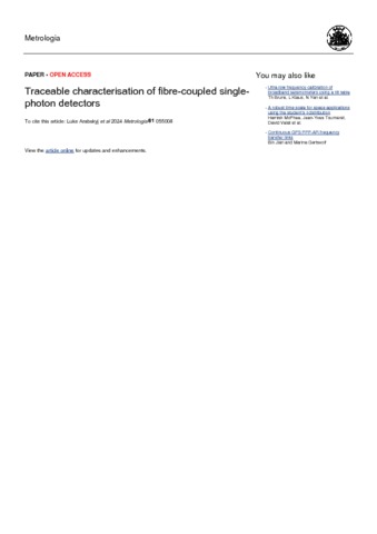 Arabskyj, L; Dolan, P R; Parke, A L; Santana, T S; Hall, S R G; Porrovecchio, G; Smid, M; Lucamarini, M; Chunnilall, C J (2024) Traceable characterisation of fibre-coupled single-photon detectors. Metrologia, 61 (5). 055008