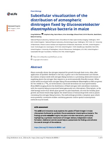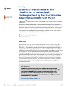 McMahon, G; Rey, S; Moore, K; Greenidge, G; Patel, D; Muchie, E H; Dent, D; Cocking, E (2024) Subcellular visualization of the distribution of atmospheric dinitrogen fixed by gluconacetobactor diazotrophicus bacteria in maise. eLiffe, 13. RP98996