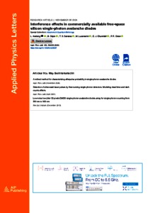 Arabskyj, L; Dejen, B; Santana, T S; Lucamarini, M; Chunnilall, C; Dolan, P R (2025) Interference effects in commercially-available free-space silicon single-photon avalanche diodes. Applied Physics Letters, 125. 194003