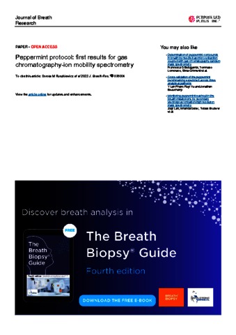 Keywords: standardisation, breath analysis, peppermint, breath sampling, benchmark, gas chromatography-ion mobility spectrometry