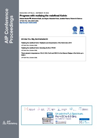 Machin, G; Sadli, M; Engert, J; Kirste, A; Pearce, J; Gavioso, R M (2024) Progress with Realizing the Redefined Kelvin. AIP Conference Proceedings, 3230 (1). 020001