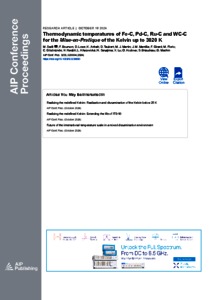 Sidli, M; Bourson, F; Lowe, D; Anhalt, K; Taubert, D; Martin, M J; Mantilla, J M; Girard, F; Florio, M; Gozonunde, C; Nasibli, H; Knazovicka, L; Sasajima, N; Lu, X; Kozlova, O; Briaudeau, S; Machin, G (2024) Thermodynamic temperatures of Fe-C, Pd-C, Ru-C and WC-C for the Mise-en-Pratique of the kelvin up to 3020 K. AIP Conference Proceedings, 3230 (1). 020004