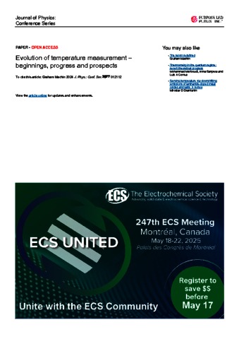 Machin, G (2024) Evolution of Temperature measurement – beginnings, progress and prospects. Journal of Physics: Conference Series, 2877. 012112