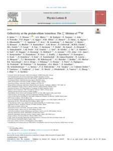 Sahin, E; Werner, V; Mistry, A K; Rudigier, M; Nomura, K; Jolie, J; Pietralla, N; Regan, P H; Aggez, G; Albers, H M; Ahmed, U; Aktas, O; Algora, A; Alhomaidhi, S; Appleton, C; Arici, T; Armstrong, M; Banerjee, A; Benito, J; Benzoni, G; Blazhev, A; Boutachkov, P; Bruce, A M; Cerderwall, B; Chishti, M M R; Cortes, M L; Crespi, F; Das, B; Davison, T; Dickel, T; Doncel, M; Ertoprak, A; Esmaylzadeh, A; Fraile, L M; Gamba, E R; Gerl, J; Gorska, M; Ha, J; Haettner, E; Hall, O; Heggen, H; Hornung, C; Hubbard, N; Jazrawi, S; John, P R; Jones, C E; Karayonchev, V; Kazantseva, E; Kern, R; Knafla, L; Kojouharov, I; Koseoglou, P; Kosir, G; Kostyleva, D; Kurz, N; Kuzminchuk, N; Llanos-Exposito, M; Lozeva, R; Mengoni, D; Mertzimekis, T J; Mikolajczuk, M; Morales, A I; Murka, I; Murias, J R; Nara-SIngh, B S; Orrigo, S E A; Pellumaj, J; Pelonis, S; Pietri, S; Pigliapoco, S; Podolyak, Zs; Polettini, M; Rezynkina, K; Rosch, H A; Schaffner, H; Scheidenberger, Ch; Sexton, L; Soderstrom, P A; Tanaka, Y K; Valiente-Dobson, J J; Vasileiou, P; Vasiljevic, J; Vesic, J; Weick, H; Wiederhold, J; Yaneva, A; Zhang, G; Zhou, J; Zyriliou, A (2024) Collectivity at the prolate-oblate transition: The 2+ 1 lifetime of 190W. Physics Letters B, 857. 138976