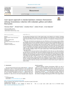 Zuzek, V; Rusby, R; Pearce, J; Peruzzi, A; Bojkovski, J (2023) Least squares approach to standard platinum resistance thermometer subrange inconsistency reduction with redundant gallium and indium fixed points. Measurement, 220. 113400