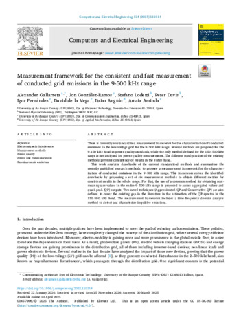 Gallarreta, A; González-Ramos, J; Lodetti, S; Davis, P; Fernández, I; de la Vega, D; Angulo, I; Arrinda, A (2025) Measurement framework for the consistent and fast measurement of conducted grid emissions in the 9-500 kHz range. Computers and Electrical Engineering, 124. 110314 ISSN 00457906