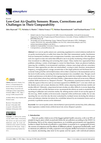 Hayward, I; Martin, N A; Ferracci, V; Kazemimanesh, M; Kumar, P (2024) Low-Cost Air Quality Sensors: Biases, Corrections and Challenges in Their Comparability. Atmosphere, 15 (12). 1523 ISSN 2073-4433