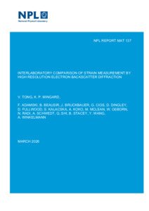Tong, V; Mingard, K P; Adamski, F; Beausir, B; Bruckbauer, J; Cios, G; Dingley, D; Fullwood, D; Kalacska, S; Koko, A; McLean, M; Osborn, W; Radi, N; Schwedt, A; Shi, Q; Stacey, B; Wang, Y; Winklemann, A (2026) Interlaboratory comparison of strain measurement by high resolution electron backscatter diffraction. NPL Report. MAT 137