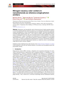 Patel, N; Dejen, B; Church, S; Dolan, P; Parkinson, P (2025) Nitrogen-vacancy color centers in nanodiamonds as reference single-photon emitters. Optics Express, 33 (12). 25159 ISSN 1094-4087