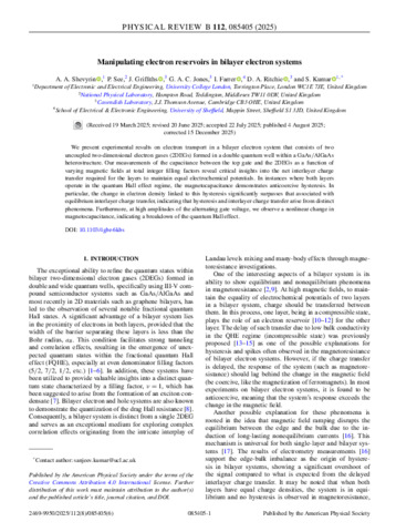 Shevyrin, A A; See, P; Griffiths, J; Jones, G A C; Farrer, I; Ritchie, D A; Kumar, S (2025) Manipulating electron reservoirs in bilayer electron systems. Physical Review B, 112 (8). 085405 ISSN 2469-9950