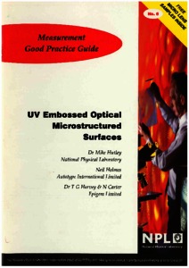Hutley, M C; Holmes, N*; Harvey, T*; Carter, N* (1997) UV embossed optical microstructured surfaces. Measurement Good Practice Guide. 6
