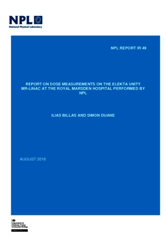 Billas, Ilias; Duane, Simon (2018) Report on dose measurements on the Elekta Unity MR linac at the Royal Marsden Hospital performed by NPL. NPL Report. IR 49