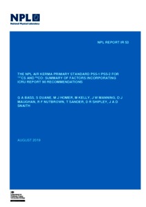 Bass, G A; Duane, S; Homer, M J; Kelly, M; Manning, J W; Maughan, D J; Nutbrown, R F; Sander, T; Shipley, D R; Snaith, J A D (2019) The NPL Air Kerma Primary Standard PS5-1/PS5-2 for 137CS and 60CO: Summary Of Factors Including ICRU 90 Recommendations. NPL Report. IR 53