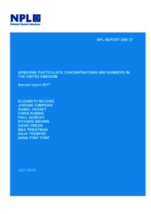 McGhee, E; Tompkins, J; Hessey, I; Robins, C; Quincey, P; Brown, R; Green, D; Tremper, A; Priestman, M; Font Font, A (2018) Airborne particulate concentrations and numbers in the United Kingdom, annual report 2017. NPL Report. ENV 27