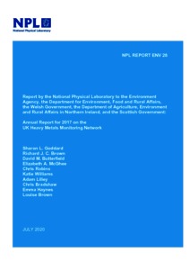 Goddard, S L; Brown, R J C; Butterfield, D M; McGhee, E A; Robins, C; Williams, K; Lilley, A; Bradshaw, C; Haynes, E; Brown, L (2020) Annual report for 2017 on the UK Heavy Metals Monitoring Network. NPL Report. ENV 28