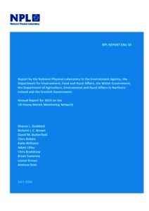 Goddard, S L; Brown, R J C; Butterfield, D M; Robins, C; Williams, K; Lilley, A; Bradshaw, C; Sweeney, B; Brown, L; Sims, A (2020) Annual Report for 2019 on the UK Heavy Metals Monitoring Network. NPL Report. ENV 30