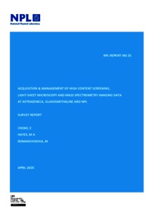 Cooke, E; Hayes, M; Romanchikova, M; Dexter, A; Steven, R; Thomas, S; Shaw, M; Pilling, J; Ling, S; Strittmatter, N; Ivanov, D; Wang, Y; Race, A; Fraser, D; Francis, J; Newman, C; West, A; Lavelle, J (2020) Acquisition and management of high content screening, light-sheet microscopy and mass spectrometry imaging data at AstraZeneca, GlaxoSmithKline and NPL: a survey report. NPL Report. MS 25
