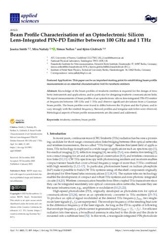 Smith, J; Naftaly, M; Nellen, S; Globisch, B (2021) Beam Profile Characterisation of an Optoelectronic Silicon Lens-Integrated PIN-PD Emitter between 100 GHz and 1 THz. Applied Sciences, 11 (2). 465 ISSN 2076-3417