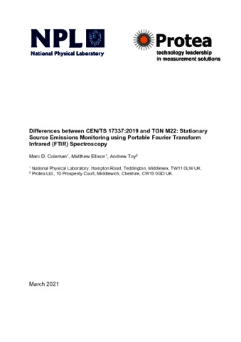 Coleman, M D; Ellison, M; Toy, A (2021) Differences between CEN/TS 17337:2019 and TGN M22: Stationary Source Emissions Monitoring using Portable Fourier Transform Infrared (FTIR) Spectroscopy. Other.