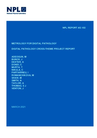 Adeogun, M; Bunch, J; Dexter, A; Dondi, C; Murta, T; Nikula, C; Shaw, M; Taylor, A; Partarrieu, I; Romanchikova, M; Smith, N; Thomas, S; Venton, J (2021) Metrology for Digital Pathology. Digital pathology cross-theme project report. NPL Report. AS 102