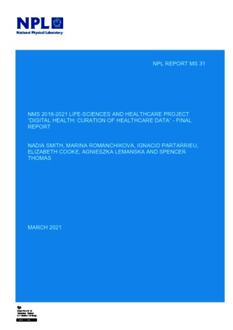 Smith, N; Romanchikova, M; Partarrieu, I; Cooke, E; Lemanska, A; Thomas, S (2021) NMS 2018-2021 Life-sciences and healthcare project "Digital health: curation of healthcare data" - final report. NPL Report. MS 31