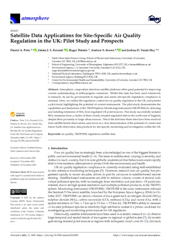 Potts, D A; Ferranti, E J S; Timmis, R; Brown, A S; Vande Hey, J D (2021) Satellite data applications for site-specific air quality regulation in the UK: Pilot study and prospects. Atmosphere, 12 (12). 1659
