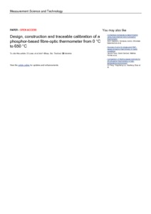 Lowe, D; Sutton, G; Sposito, A; Machin, G; Pearce, J (2021) Design, construction and traceable calibration of a phosphor-based fibre-optic thermometer from 0 ºC to 650 ºC. Measurement Science and Technology, 32 (9). 094004