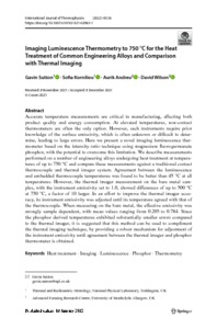 Sutton, G; Korniliou, S; Andreu, A; Wilson, D (2022) Imaging luminescence thermometry to 750 °C for the heat treatment of common engineering alloys and comparison with thermal imaging. International Journal of Thermophysics, 43. 36