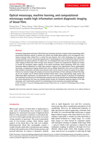Shaw, M; Claveau, R; Manescu, P; Elmi, M; Brown, B J; Scrimgeour, R; Kolln, L S; McConnell, G; Fernandez-Reyes, D (2021) Optical mesoscopy, machine learning, and computational microscopy enable high information content diagnostic imaging of blood films. Journal of Pathology, 255 (1). pp. 62-71.