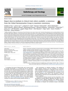 Kry, S F; Lye, J; Clark, C H; Andratschke, N; Dimitiadis, A; Followill, D; Howell, R; Hussein, M; Ishikawa, M; Kito, S; Kron, T; Lee, J; Michalski, J; Monti, A F; Reynaert, N; Taylor, P; Venables, K; Xiao, Y; Lehmann, J (2021) Report dose-to-medium in clinical trials where available; a consensus from the Global Harmonisation Group to maximize consistency. Radiotherapy and Oncology, 159. pp. 106-111.