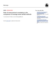 Ribeiro, A S; Almeida, M C; Cox, M G; Sousa, J A; Martins, L; Loureiro, D; Brito, R; Silva, M; Soares, A C (2021) Role of measurement uncertainty in the comparison of average areal rainfall methods. Metrologia, 58 (4). 044001