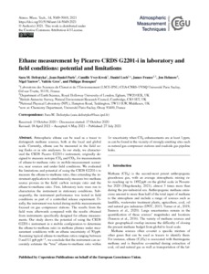 Defratyka, S M; Paris, J D; Yver-Kwok, C; Loeb, D; France, J; Helmore, J; Yarrow, N; Gros, V; Bousquet, P (2021) Ethane measurement by Picarro CRDS G2201-i in laboratory and field conditions: potential and limitations. Atmospheric Measurement Techniques, 14 (7). pp. 5049-5069.
