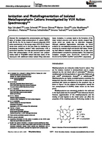 Schbert, K; Schwob, L; Dorner, S; Girod, M; MacAleese, L; Pieterse, C L; Schlatholter, T; Techert, S; Bari, S (2021) Ionization and Photofragmentation of Isolated Metalloporphyrin Cations Investigated by VUV Action Spectroscopy. Chemistry – A European Journal, 27 (48). pp. 12371-12379.