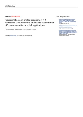 Zhou, X Y; Leng, T; Pan, K; Abdalla, M; Novoselov, K S; Hu, Z R (2021) Conformal screen printed graphene 4 x 4 wideband MIMO antenna on flexible substrate for 5G communication and IoT applications. 2D Materials, 8 (4). 045021