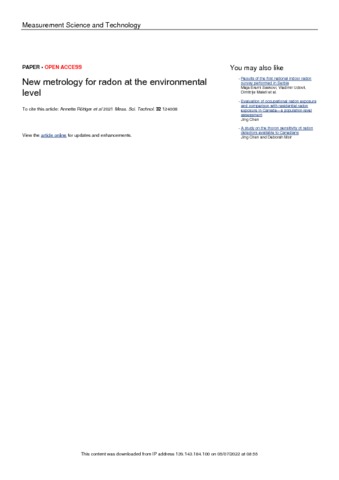 | Keywords: | radon, metrology, tracer, environmental measurements |