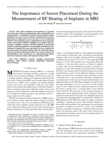 Wooldridge, J; Bownds, D (2022) The Importance of Sensor Placement during the Measurement of RF Heating of Implants in MRI. IEEE Journal of Electromagnetics, RF and Microwaves in Medicine and Biology, 6 (3). pp. 399-405.