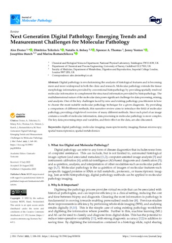 Dexter, A; Tsikritsis, D; Belsey, N A; Thomas, S A; Venton, J; Bunch, J; Romanchikova, M (2022) Next generation digital pathology: emerging trends and measurement challenges for molecular pathology. Journal of Molecular Pathology, 3 (3). pp. 168-181.