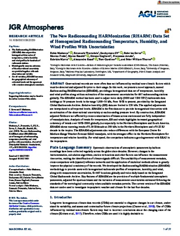 Madonna, F; Tramutola, E; Souleymane, S Y; Serva, F; Proto, M; Rosoldi, M; Gagliardi, S; Amato, F; Marra, F; Fasso, A; Gardiner, T; Thorne, P W (2022) The New Radiosounding HARMonization (RHARM) Data Set of Homogenized Radiosounding Temperature, Humidity, and Wind Profiles With Uncertainties. Journal of Geophysical Research - Atmospheres, 127 (2). e2021JD035220