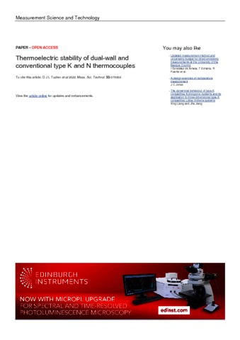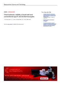 Tucker, D J L; Edler, F; Zuzek, V; Bojkovski, J; Garcia-Izquierdo, C; Parrondo, M; Sindelarova, L; Arifovic, N (2022) Thermoelectric stability of dual-wall and conventional type K and N thermocouples. Measurement Science and Technology, 33 (7). 075003