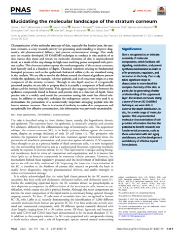 Starr, N J; Khan, M H; Edney, M K; Trindade, G F; Kern, S; Pirkl, A; Kleine-Boymann, M; Elms, C; O'Mahony, M M; Bell, M; Alexander, M R; Scurr, D J (2022) Elucidating the molecular landscape of the stratum corneum. Proceedings of the National Academy of Sciences, 119 (12). e2114380119