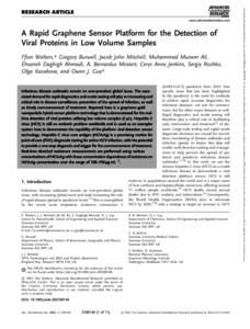 Walters, F; Burwell, G; Mitchell, J J; Ali, M M; Ahmadi, E D; Mostert, A B; Jenkins, C A; Rozhko, S; Kazakova, O; Guy, O J (2022) A Rapid Graphene Sensor Platform for the Detection of Viral Proteins in Low Volume Samples. Advanced Nanobiomed Research, 2 (6). 2100140
