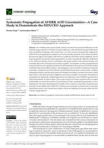 Popp, T; Mittaz, J (2022) Systematic Propagation of AVHRR AOD Uncertainties-A Case Study to Demonstrate the FIDUCEO Approach. Remote Sensing, 14 (4). 875
