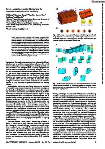 Zhang, Y; Shang, X; Xu, J; Guo, Y; Duan, L; Lu, X (2023) Novel compact waveguide filtering twist for computer numerical control machining. Electronics Letters, 59 (1). e12693
