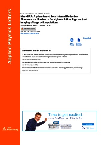 Foylan, S; Amos, W B; Dempster, J; Kolln, L; Hansen, C G; Shaw, M; McConnell, G (2023) MesoTIRF: a prism based Total Internal Reflection Fluorescence illuminator for high resolution, high contrast imaging of large cell populations. Applied Physics Letters, 122 (11). 113701