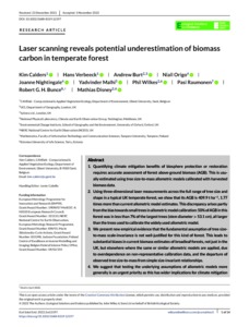 Calders, K; Verbeek, H; Burt, A; Origo, N; Nightingale, J; Malhi, Y; Wilkes, P; Raumoner, P; Bunce, R G H; Disney, M (2022) Laser scanning reveals potential underestimation of biomass carbon in temperate forests. Ecological Solutions and Evidence, 3 (4). e12197