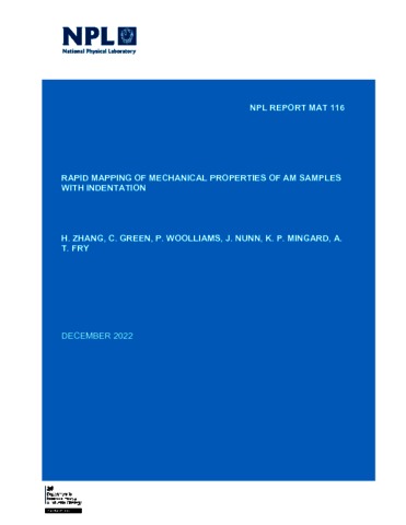 Zhang, H; Green, C; Woolliams, P; Nunn, J; Mingard, K; Fry, A T (2022) Rapid mapping of mechanical properties of AM samples with indentation. NPL Report. MAT 116