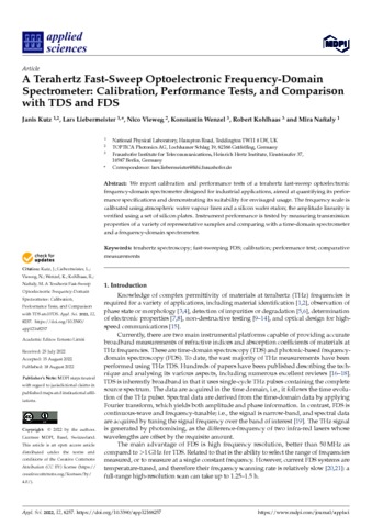 Kutz, J; Liebermeister, L; Vieweg, N; Wenzel, K; Kowjaas, R; Naftaly, M (2022) A Terahertz Fast-Sweep Optoelectronic Frequency-Domain Spectrometer: Calibration, Performance Tests, and Comparison with TDS and FDS. Applied Sciences, 12 (16). 8257