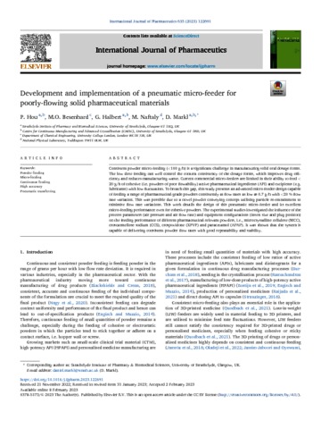 Hou, P; Besenhard, M O; Halbert, G; Naftaly, M; Markl, D (2023) Development and implementation of a pneumatic micro-feeder for poorly-flowing solid pharmaceutical materials. International Journal of Pharmaceutics, 635. 122691